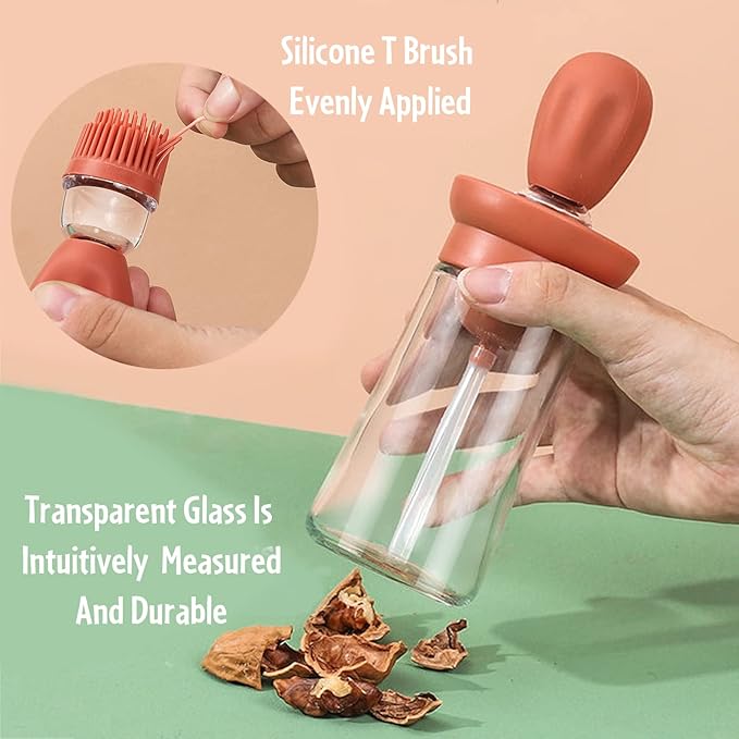 موزع زيت زيتون زجاجي مع فرشاة، تصميم 2 في 1، زجاجة قياس بالقطارة للطبخ الصحي والخبز والمعجنات والشواء من لوكسلوفت، 180 مل
